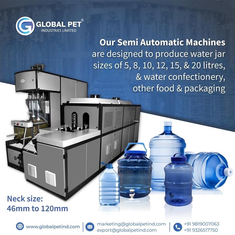 Our semi-automatic PET blowing machines efficiently handle 5 Litre bottle manufacturing with precision and reliability.